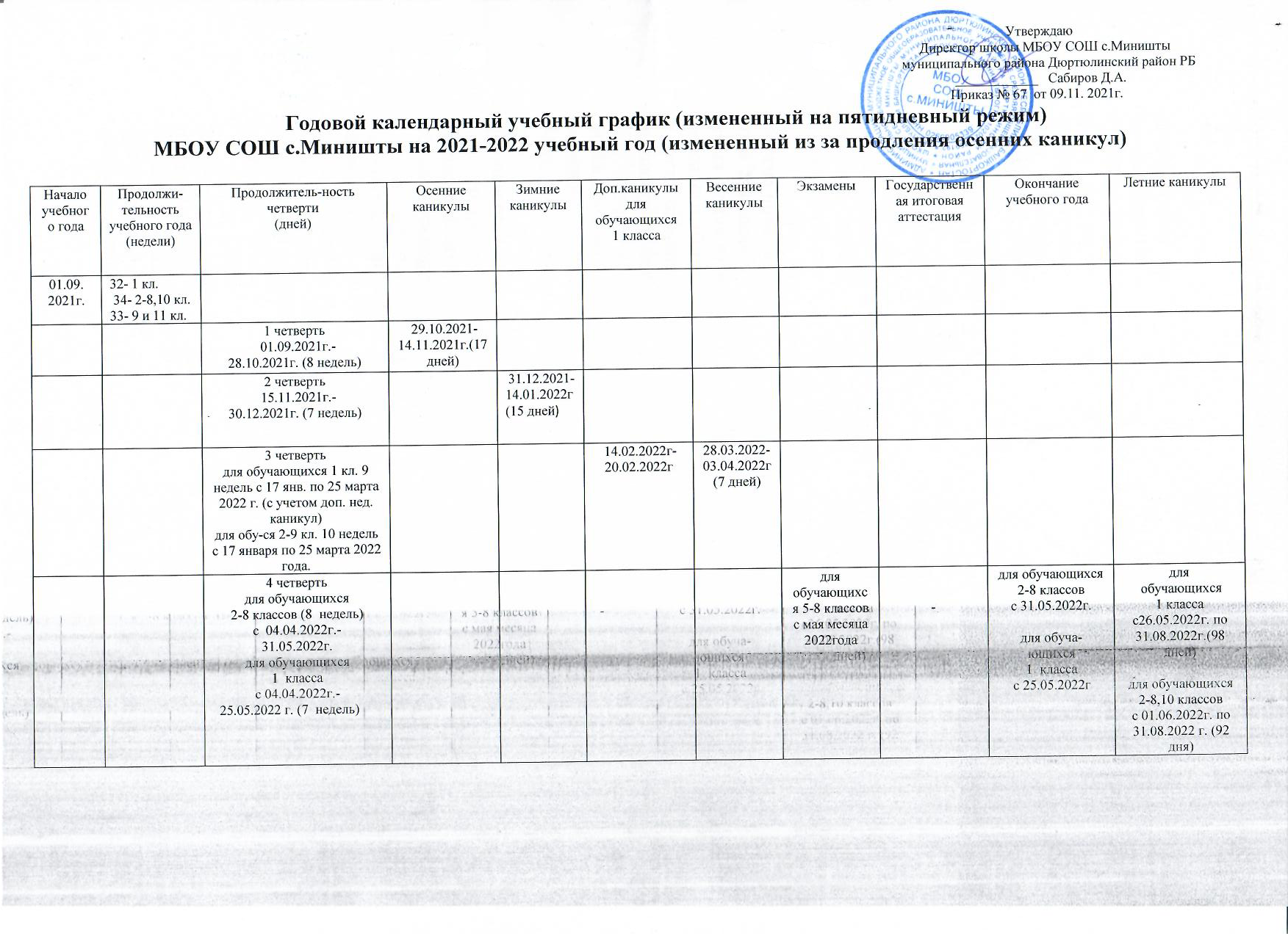 Годовой кал. учебный график 2021-2022